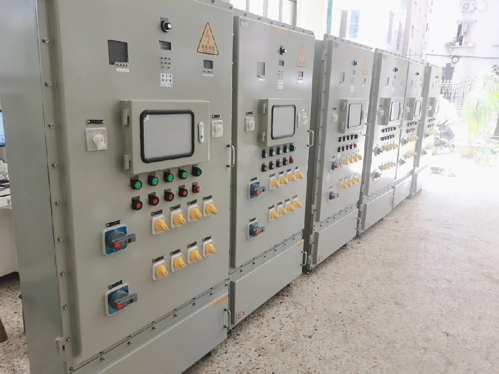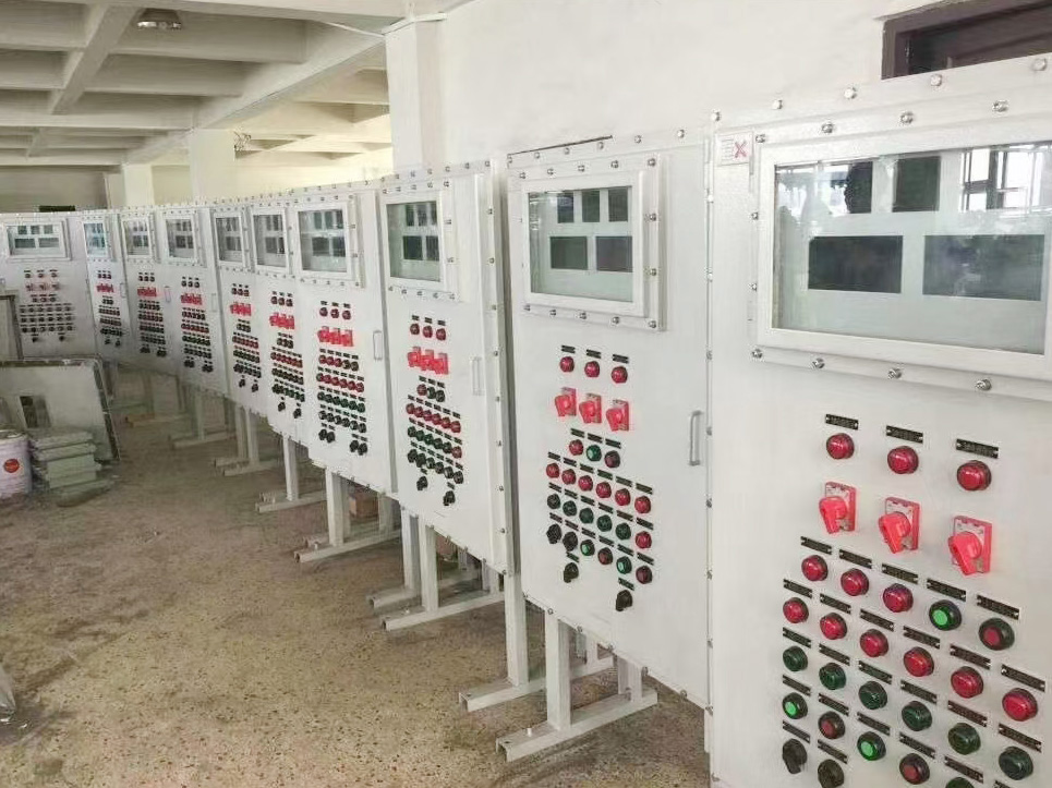 防爆控制柜是按電氣接線(xiàn)要求將開(kāi)關(guān)設(shè)備、測(cè)量?jī)x表、保護(hù)電器和輔助設(shè)備組裝在封閉或半封閉金屬柜中或屏幅上,其布置應(yīng)滿(mǎn)足電力系統(tǒng)正常運(yùn)行的要求,便于檢修,不危及人身及周?chē)O(shè)備。正常運(yùn)行時(shí)可借助手動(dòng)或自動(dòng)開(kāi)關(guān)接通或分?jǐn)嚯娐?。故障或不正常運(yùn)行時(shí)借助保護(hù)電器切斷電路或報(bào)警。借測(cè)量?jī)x表可顯示運(yùn)行中的各種參數(shù),還可對(duì)某些電氣參數(shù)進(jìn)行調(diào)整,對(duì)偏離正常工作狀態(tài)進(jìn)行提示或發(fā)出信號(hào)。常用于各發(fā)、配、變電所中控制柜主要用于高層建筑無(wú)塔供水,消防深井泵恒壓供水等根據(jù)實(shí)時(shí)用水工況需要閉環(huán)調(diào)節(jié)水泵轉(zhuǎn)速的場(chǎng)合,采用知名品牌的變頻器、智能控制器、壓力傳感器及水泵組成閉環(huán)控制系統(tǒng)。多泵控制,管網(wǎng)壓力穩(wěn)定,提高供水質(zhì)量,減少二次污染,節(jié)電效率高,可實(shí)現(xiàn)無(wú)人值守的無(wú)塔供水自動(dòng)控制系統(tǒng)。